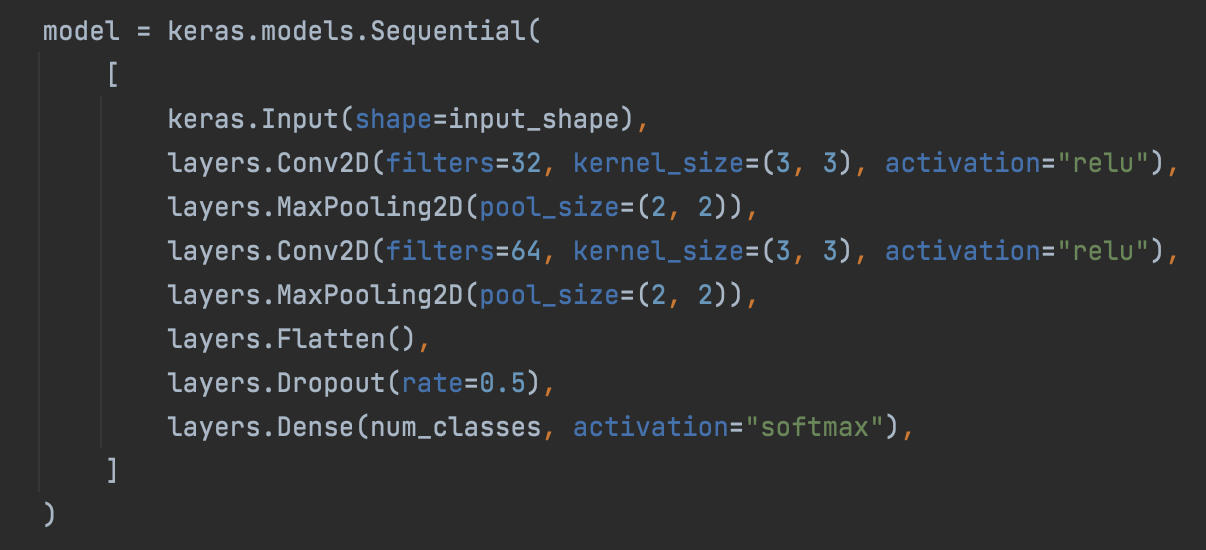 Convolutional Neural Network: Keras Sequential Model with 6 hidden layers ![]() Optimizer: Adam Learning Rate: 0.001 Loss: Binary Crossentropy |